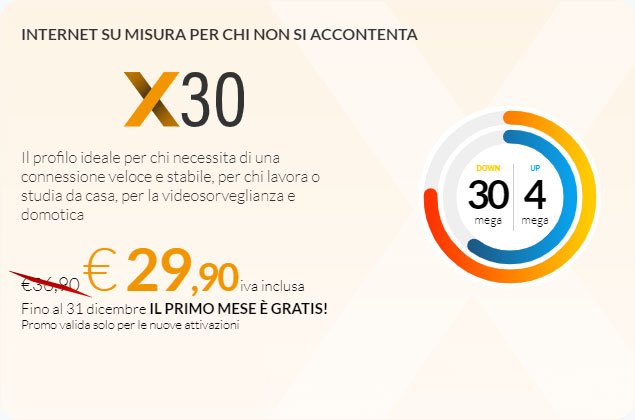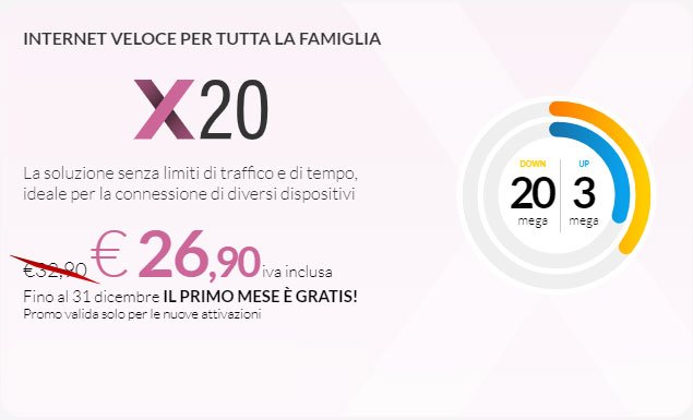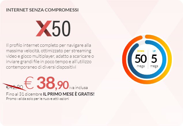 Costo di attivazione €65,57 + iva (ripartito nelle prime 4 rate) con pagamento RID, Carta di credito, Postepay o carta ricaricabile.
