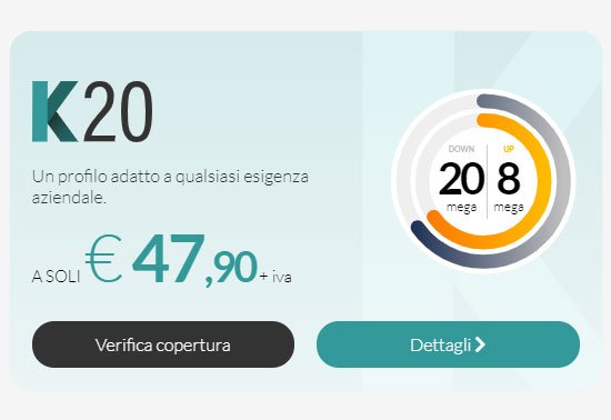 Costo di attivazione € 65,57 + iva (ripartito nelle prime 4 rate) con pagamento RID, Carta di credito, Postepay o carta ricaricabile.